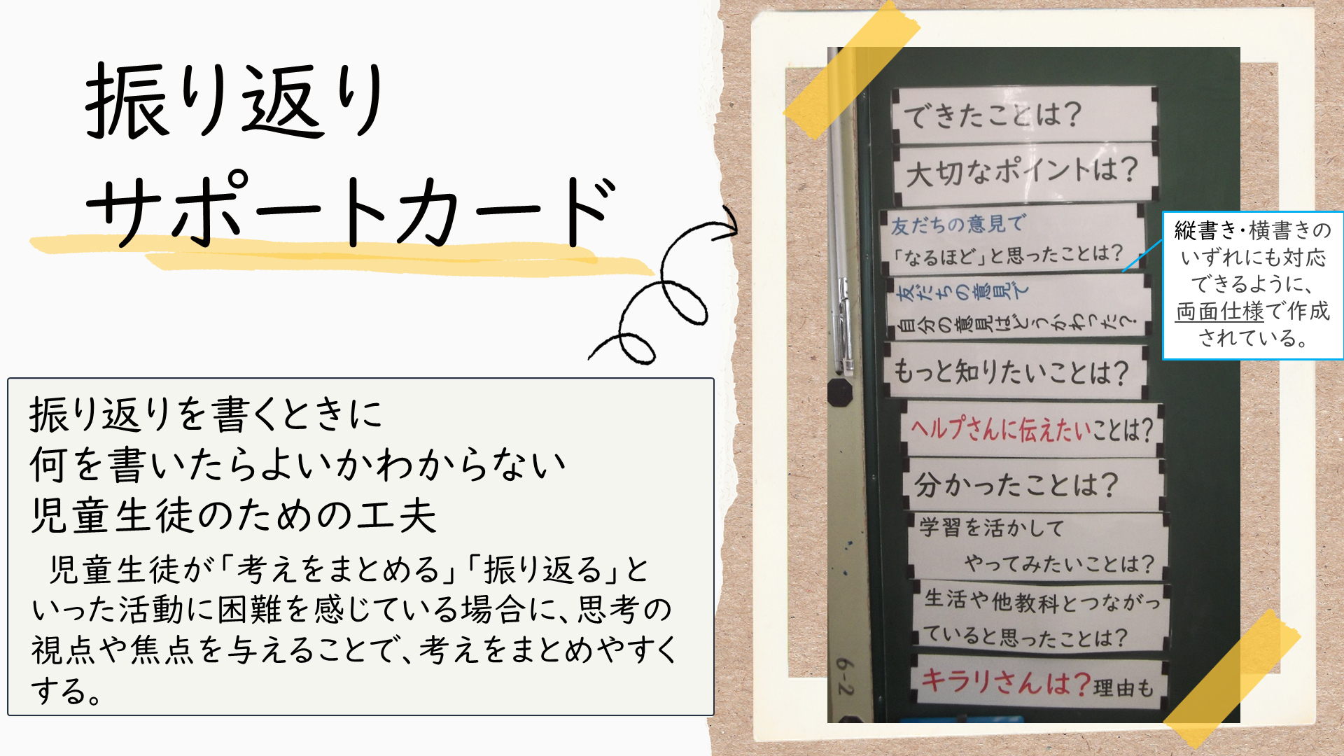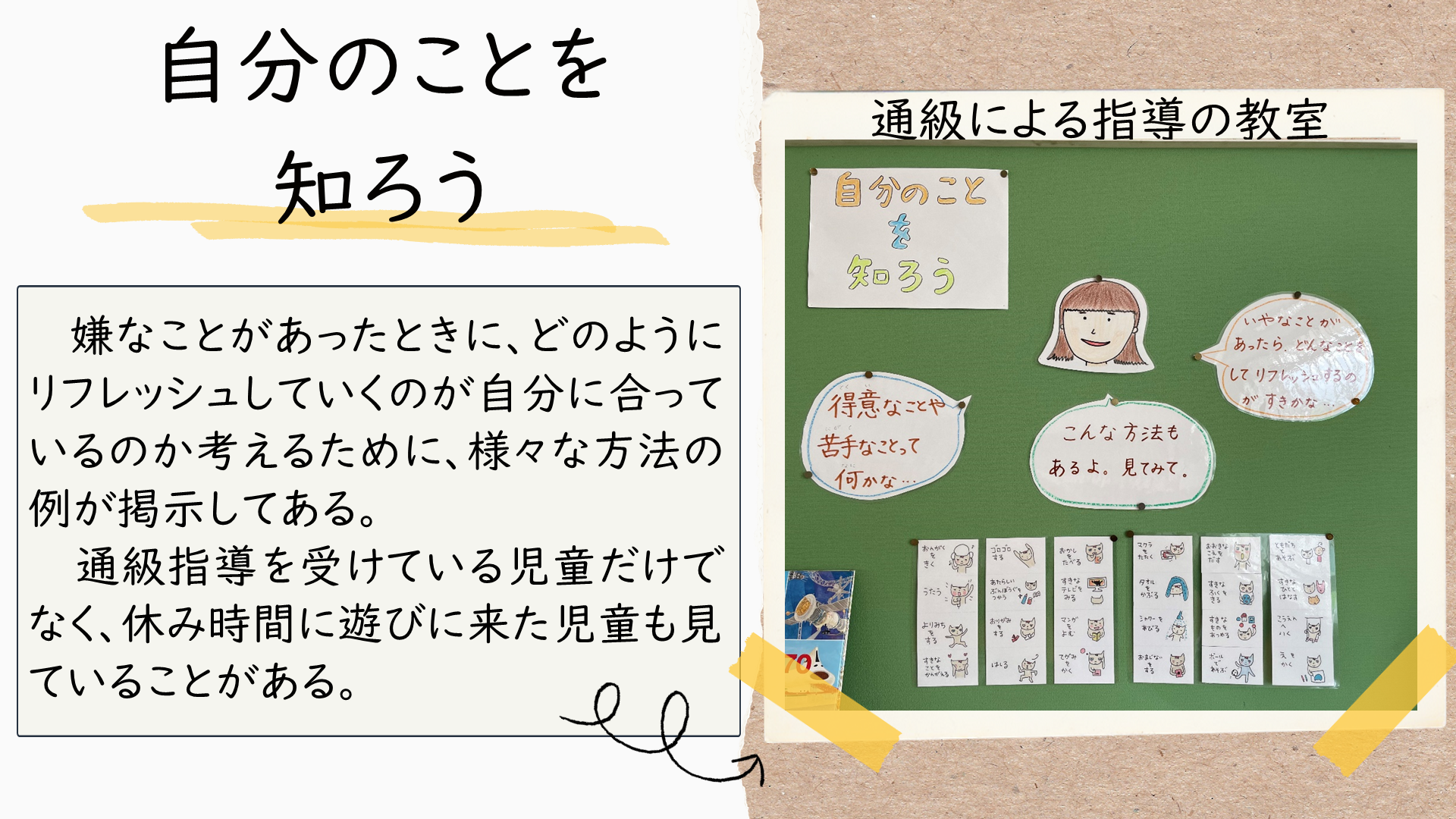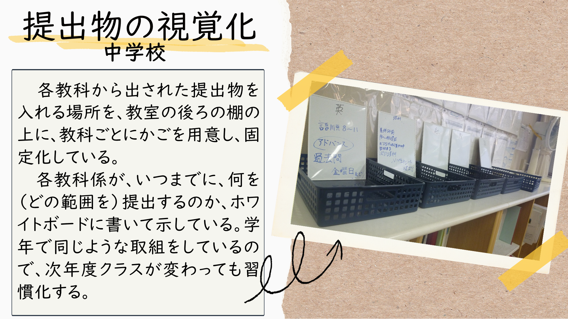 センター所員が教育相談で学校訪問した際に見つけた、教室環境整備のアイディアです。