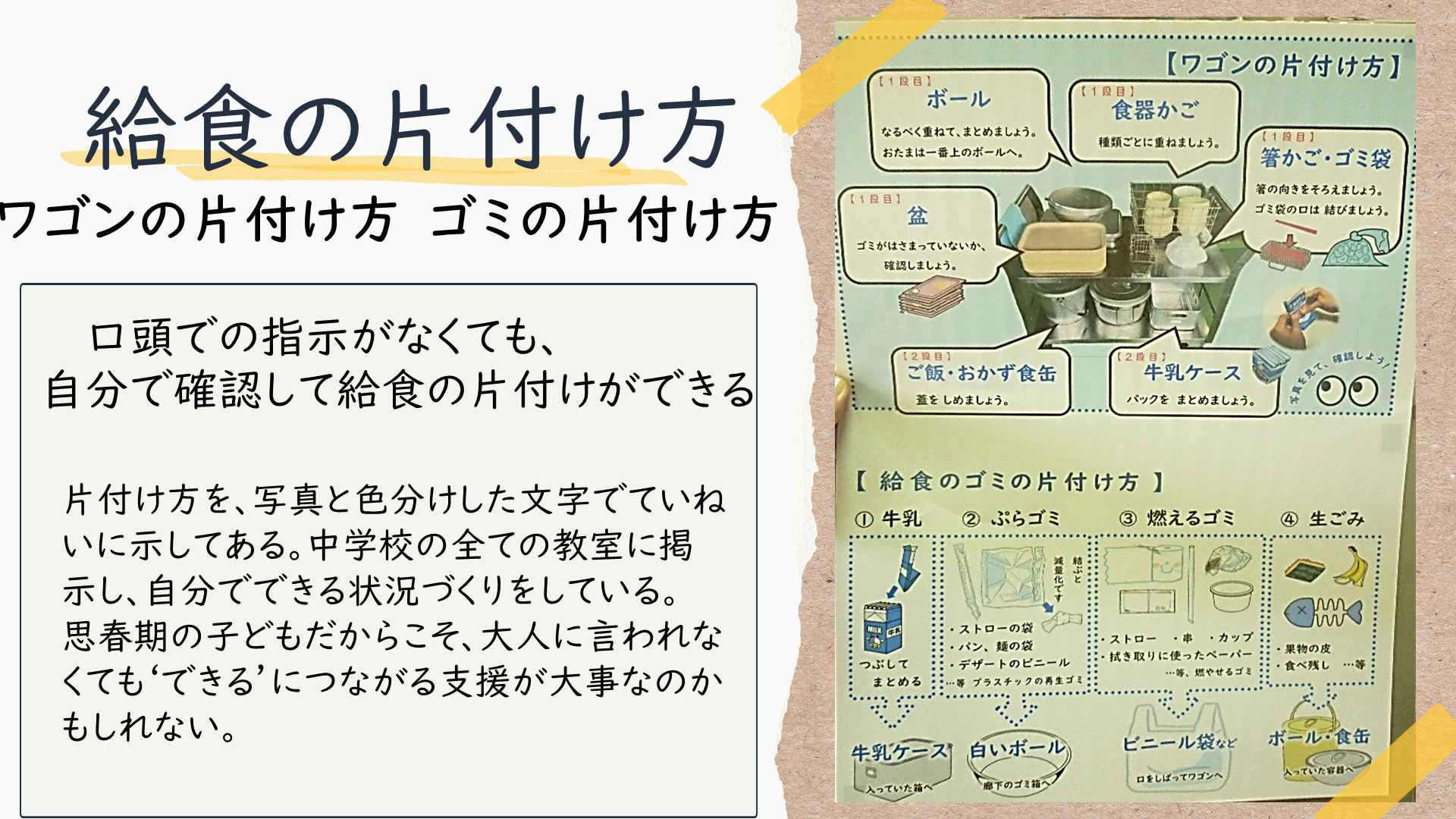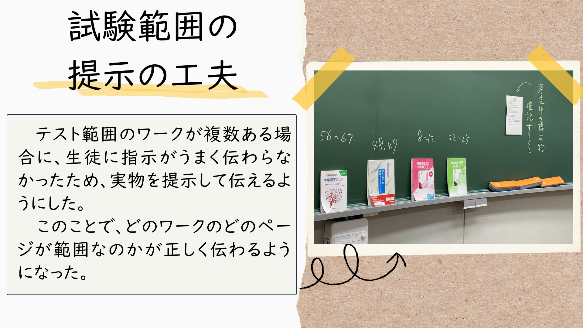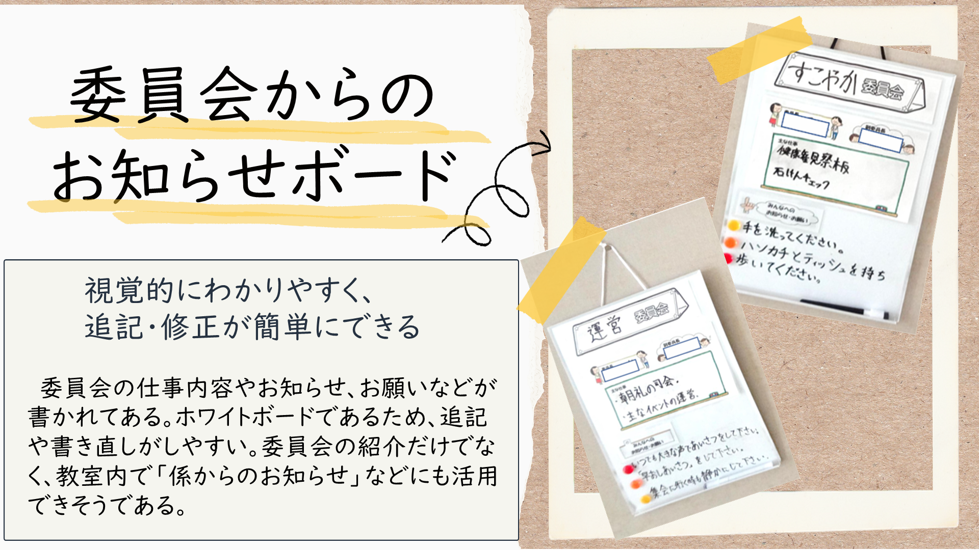 センター所員が教育相談で学校訪問した際に見つけた、教室環境整備のアイディアです。